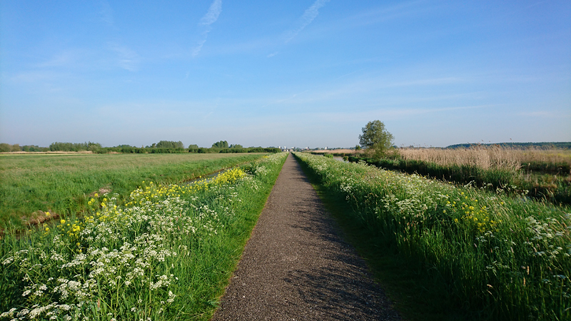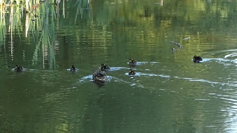 We maken een rondje en ik sla het pad naar de ooievaars vandaag over. Ik wil niet te laat thuis zijn dus ik keer aan het einde van het gebied weer om. Ik zie inmiddels al aardig wat jonge eendjes en meerkoetjes. Altijd weer leuk.
