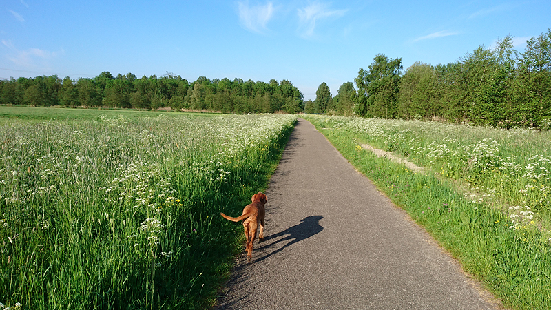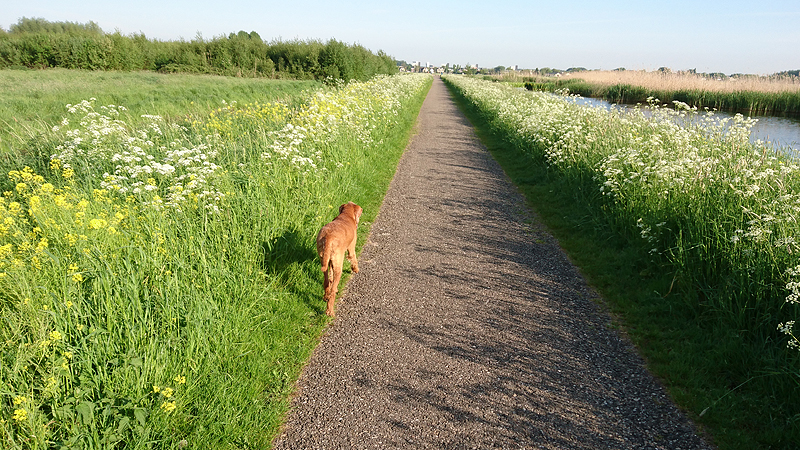 Vanochtend het laatste rondje in Nederland voor vertrek. Ik heb al het een en ander ingepakt gisteren dus een kort rondje nu moet nog wel lukken. Wafje moet toch ook lekker uit want zij zit de hele nacht weer in de auto tenslotte. Ik ga dus gauw op pad. Om 6.00 ben ik de automaat maar gaan openen want ik was toch wakker en rond 7.30 waren we dan op pad. Korter kan er niet tussen de maaltijd en het lopen zitten. Ik loop een beetje door en het is heerlijk weer. Zou ik ook lekker weer in Schotland gaan krijgen? De voorspellingen zien er niet al te best uit maar je weet nooit. Mooi en schoon is het er in ieder geval wel. Maar ik heb de afgelopen weken met veel plezier hier gelopen (en gefietst).