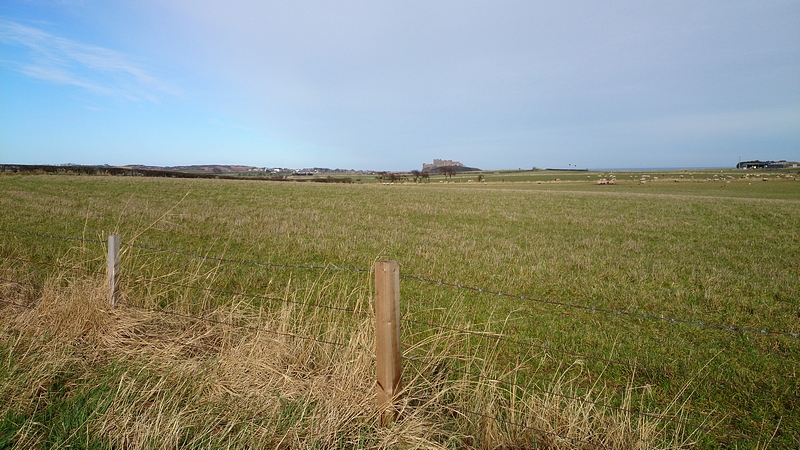 Het strand naar de duinopgang was redelijk te doen, beetje zacht maar OK. De duinopgang gaat via een trap en vanaf daar weer over het veld naar Boulmer. Ik was nu 12 km onderweg. Op zich wel een gek idee, want ik zou dit stuk nog meer dan 4 keer moeten afleggen. Maar alles voelde prima.