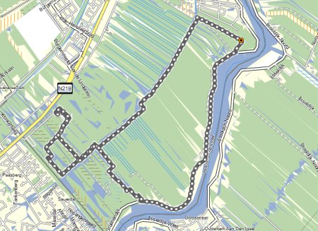 Na dit korte stopje ga ik weer verder. Net als ik even mijn gezicht wil deppen komt er een loper achterop. Ik was me net aan het afvragen waarom de loper zoveel herrie maakt met zijn schoenen als de man vraagt of ik een stukje mee loop. Nou dat wil ik wel want het is een prima moment om te zien of ik nu rustig genoeg loop om uitgebreid te babbelen en dat blijkt zo te zijn want we hebben het eerst over de duiven die hij natuurlijk ook had gezien en daarna over de routes die we normaal lopen. Hij heeft een 2 kerken route gemaakt van Capelle naar Moordrecht weer terug. Dat is vandaag dan 23 kilometer. Ik heb geen tijd om ook rechtsaf te slaan richting Moordrecht dus ik sla uiteindelijk onderaan de dijk linksaf en ga weer alleen verder. Grappig om even samen met iemand op te lopen want het gaat wel sneller voorbij allemaal.