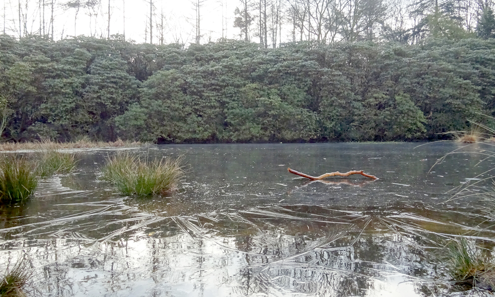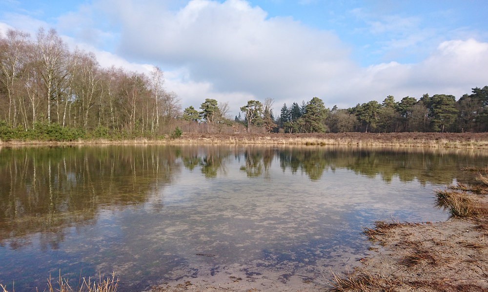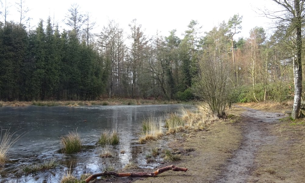 Eerst dus langs camping de Tol en vanaf daar even langs beide vennetjes van het Ronde Huis. Dat blijft een mooi plekje. Het ijs is nog niet helemaal weg zo te zien.