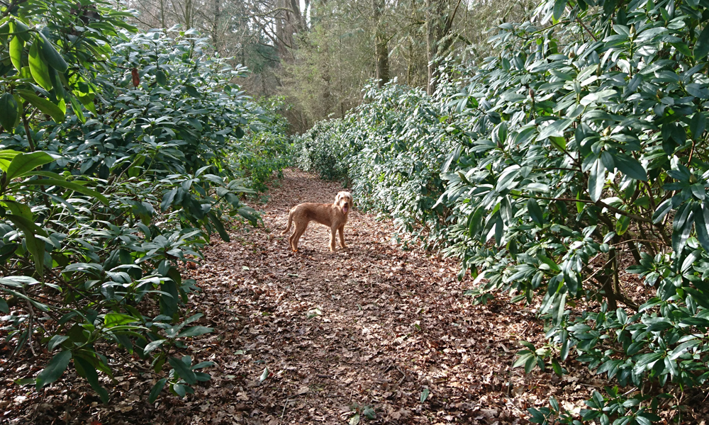 Vandaag ga ik weer met woefje op pad. Ik wil niet heel erg ver lopen en kies voor het bos aan de overkant. Na de warming up kom ik al meteen weer iemand tegen met wie ik sta te kletsen. Na ruim een half uur zit er dus pas 2 km op de teller. Op zich leuk maar ook weer niet eigenlijk. Ik hobbel over het pad met de Rodondendrons links en rechts. Die zijn aangelegd door Marcel van Dam weet ik inmiddels en ik loop dus over de Steigerberg. Ik las ook het boek over alle problemen die hij heeft gehad hier met de aanleg van de tuin en het onderhoud. Verhelderend en leerzaam.