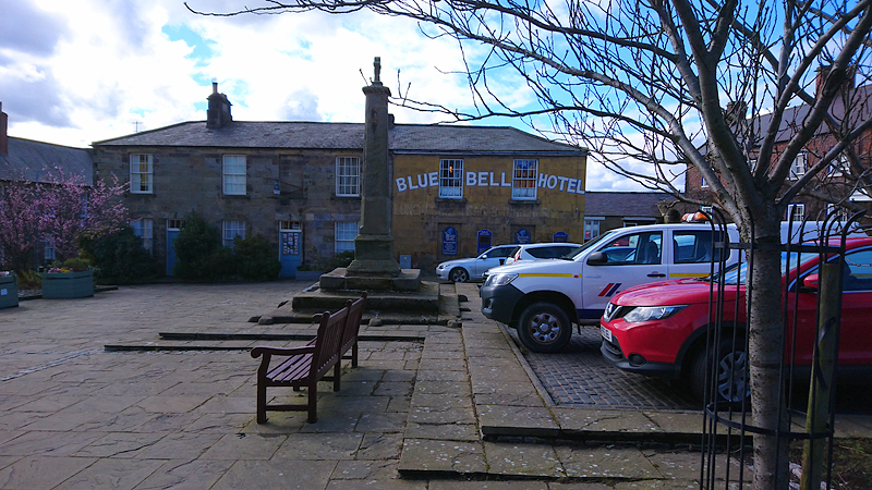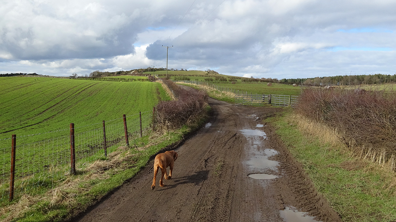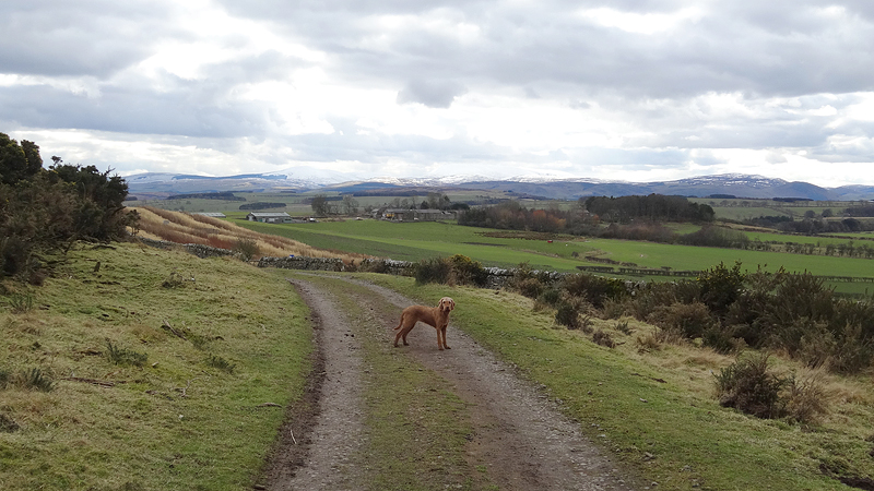 Ik wil eigenlijk nog even een foto maken van het bastle house. Maar woef heeft geen zin en blijft gewoon midden op de weg staan. Makkelijk te lezen en ik breng haar terug naar de auto. Genoeg is ook wel genoeg en ik loop zelf dus nog even terug.