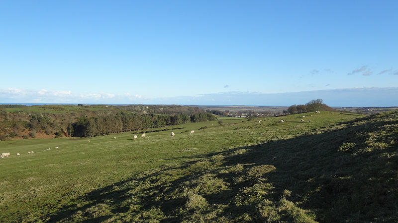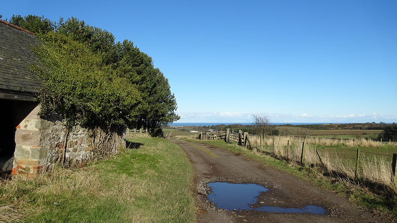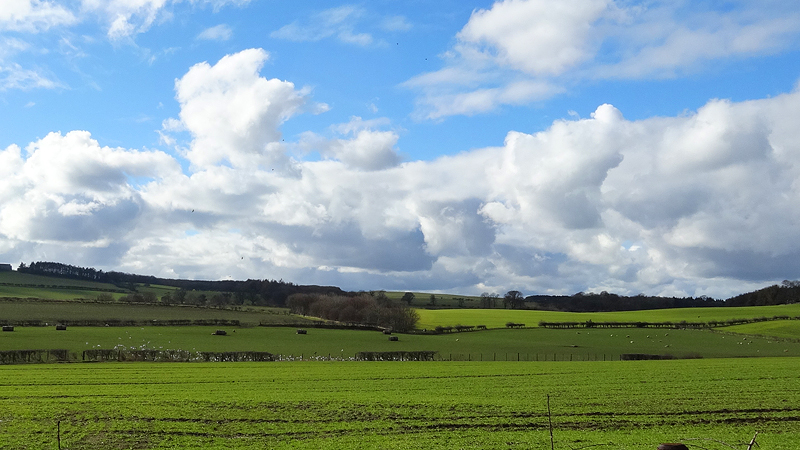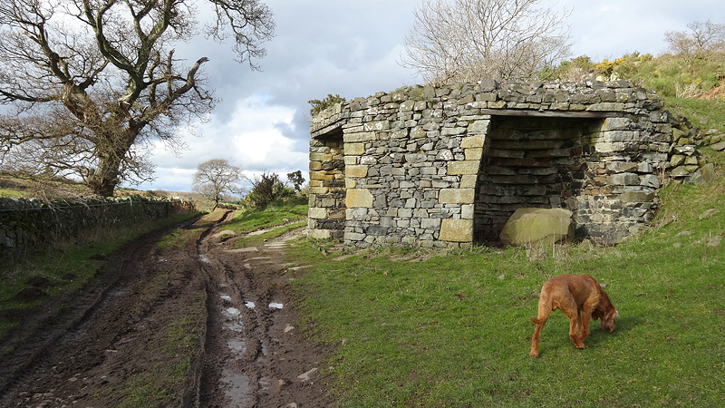En al snel zie ik waar ik heen moet en kies ik een hek om de akker op te lopen naar de twee bezienswaardigheden. Wederom vreselijk jammer dat het geen helder weer is, want de met sneeuw bedekte cheviots op de achtergrond moeten fantastisch zijn als achtergrond met goed weer. Maar ik vind dit al erg leuk zo onderweg.