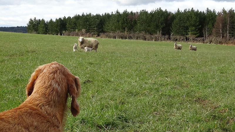 Uiteindelijk loop ik – sneller dan verwacht – alweer langs Hepburn farm en ben ik er bijna. Maar dan zegt woefje dat ze geen zin meer heeft. Ik kijk naast me en zie dat ze niet happy kijkt. Ze vertraagt en ik hoor gekke geluiden. Heeft ze dorst? Wil ze water? Ze klemt haar kaken stijf op elkaar. ‘Ik wil geen water ik wil kotsen’. En dan spuugt ze tweemaal alleen maar wat gal uit. Dat klote voer hier ook. Ze heeft dus een compleet lege maag en daar kan ze niet tegen. Gelukkig ben ik echt op een steenworp afstand van de auto. Daar krijgt ze meteen eten dat ze blij wegschrokt. Direct heeft ze een andere uitdrukking. ‘Ik ben weer OK hoor’! Ja dat zie ik ook maar ik zal voortaan zorgen dat ik een zakje voer bij me heb voor dit soort avonturen. Ik neem het mezelf kwalijk maar in Nederland heeft ze dit nooit want het voer is beter. Ik moet ook echt mijn best doen hier om voldoende vlees op haar botten te houden hier. In juni 2015 kreeg ze zelfs gewoon rundvlees uit de sale als bijvoeding…..
