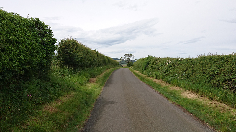 Na het kerkje sla ik rechtsaf. Nog een klein stukje ga ik lopen, tot Old Cambus en dan ga ik terug. Ik denk dat dat een mooi keerpunt is waar ik ook met de auto kan komen. Het is nog even zoeken maar uiteindelijk sta ik inderdaad op de weg bij Old Cambus. Ik kan hier vast wel de auto neerzetten en het laatst stuk naar Dowlaw lopen. Dat is met detour naar de ruine bij het kasteel dan 14 km. Ik sla rechtsaf en begin met de terugweg.