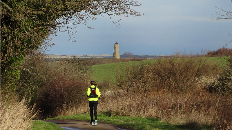 We lopen door Lucker en gaan op weg naar Spindlestone. Daar staat een soort molen zonder wieken en dat is wel een mooi punt. Alles voelt nog prima eigenlijk. Spindlestone komt dichterbij en we gaan er voorbij, op weg naar Budle Bay.