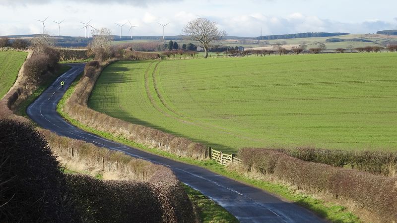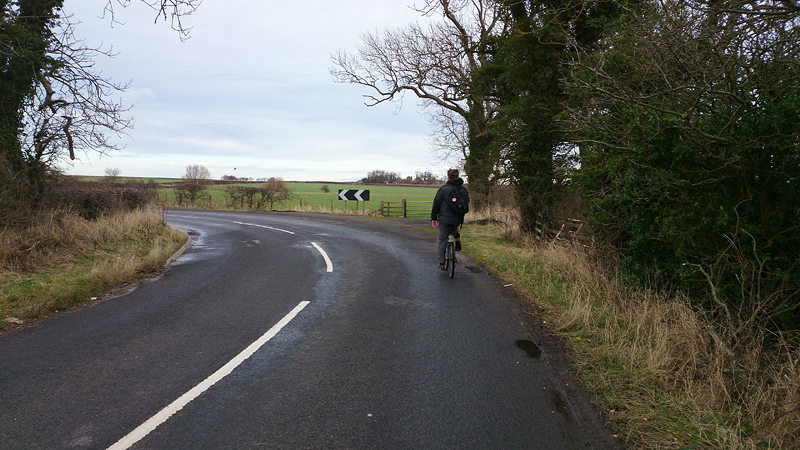 Daarna over Ingram Road weer terug naar Seahouses. Daar loopt de weg al een beetje op en neer, maar ik doe net alsof ik dat allemaal niet zie. Ik zal er toch gewoon overheen moeten, dus stap voor stap dan maar. Eigenlijk was ik al heel snel vlak bij het huisje en zag ik S. al buiten staan wachten met de fiets. Hij kon precies volgen waar ik was, dus dat was makkelijk. Samen verder op pad en dat was wel gezellig. Ik had oordopjes in met en audioboek maar dat heb ik eigenlijk meteen uitgezet. De dopjes heb ik in mijn oren gelaten want dat was eigenlijk heel prettig tegen de wind hoe gek het ook klinkt.