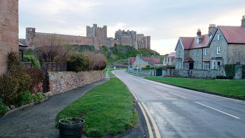 Ik reed redelijk op tijd richting Bamburgh en parkeer daar de auto. Dag! Tot later dan maar weer. Gek idee, nu eerst een enorm stuk met de benenwagen dat ik met de auto al ver vind eigenlijk. Ik maak een paar foto’s van het kasteel en het dorpje. Het begint al goed licht te worden en het lijkt echt wel een mooie dag te worden (ondanks de wind).
