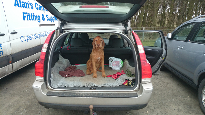 Tot mijn verrassing was alles heel nat en drassig. Ik snap dat nog steeds niet zo goed, want het is droog en het is notabene heuvel op. Dus waarom zo drassig en modderig? Van drassig werd het modderig en het was ook nog eens een slecht beloopbaar pad. Ik had al meteen de pest in. Waf loopt nog met ingepakte poot en al snel zat alles vol met modder en rommel. Ik hoopte maar dat het onder het verband droog en schoon zou blijven (wat tot mijn stomme verbazing ook zo was, bleek aan het einde in de auto).