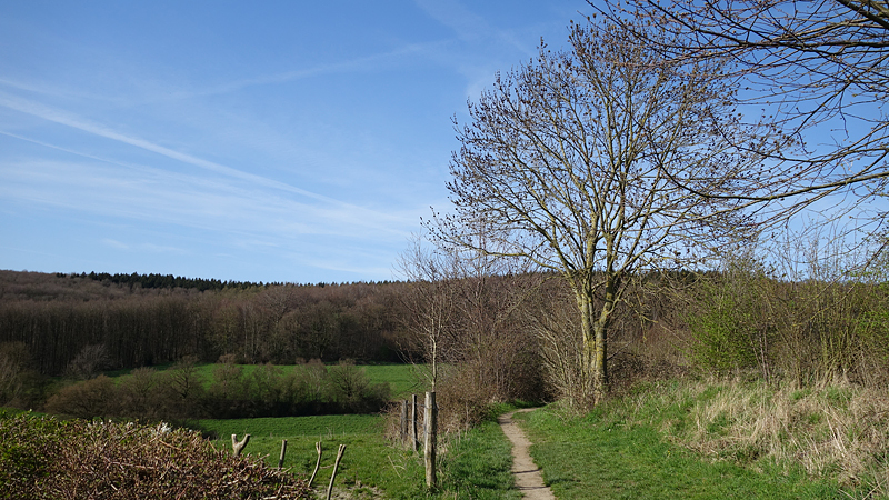 Ik had een route gevonden op de website die allerlei wandelingen heeft in Limburg. Beter een bestaande route gebruiken dan zelf het wiel uitvinden dacht ik. Op zich was de route ook wel aardig. Het begin ging over open landschap, en daarna liep ik het bos in. Nadeel in ons kleine landje is natuurlijk het feit dat je steeds op de weg stuit en overal wel de weg en het verkeer hóórt. Niet fijn! Bovendien vond ik het eigenlijk jammer om in het bos te lopen, want ik had gehoopt op de vergezichten die je in Limburg hebt. Maar we hobbelden vrolijk door en de kilometers gingen toch best snel voorbij. Het was allemaal prima te vinden overigens. Ik vraag me wel af of je niet makkelijker een beschrijving kunt lezen tijdens het lopen dan kijken op de kaart. Ik had nu de Teasi bij me en elke keer voor een afslagje piepte het apparaat dus dat liep ook wel goed.