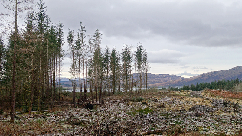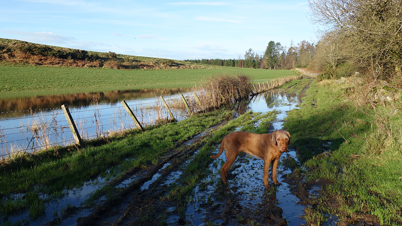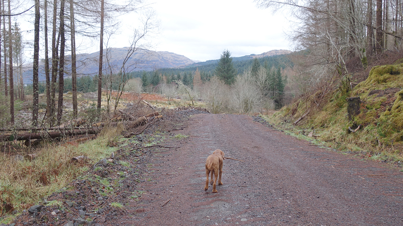 Daarna gaan we een stukje over de weg achter het hotel. Ook hier wat ijs maar we slaan uiteindelijk rechtsaf een nieuw pad op richting Rannoch en worden verrast met een prima begaanbaar pad en een prachtige omgeving. Wat een verrassing en wat jammer dat we dit niet eerder wisten want het is niet alleen mooi maar ook een lang stuk pad! Als we hier meteen waren gestart, dan waren we nu al een heel stuk verder geweest. Niks aan te doen, nu dan maar gauw kijken wat we allemaal gaan zien.