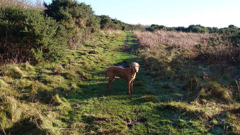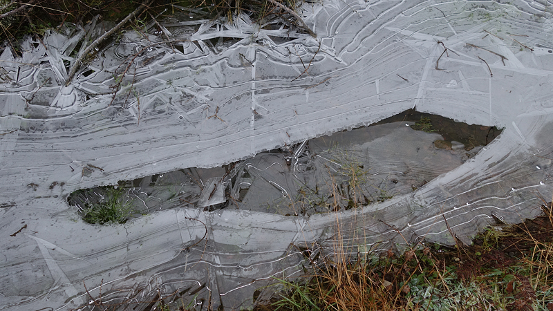 Daarna gaan we het maar eens proberen maar ik zie het somber in. Het pad is slecht te doen met de fiets en het is ijzig en glad.