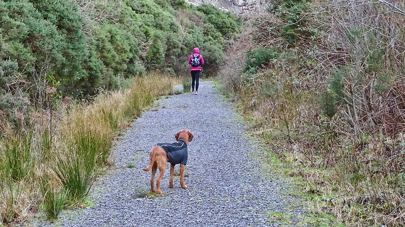 Vanaf daar zal ik gewoon lekker doorlopen zodat we er niet meer zo lang over doen en zo gebeurt het ook. Weer langs het watertje, over de open vlakten en dan zijn we alweer bij de splitsing met Dail Pier. Het is vreemd dat de terugweg steeds zoveel sneller gaat als je de herkenningspunten hebt.