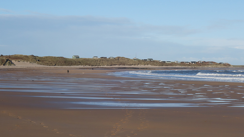 Het strand is prima beloopbaar en lekker stevig. In de verte zie ik Dunstanburgh al liggen. Dat wordt mijn eerste doel.