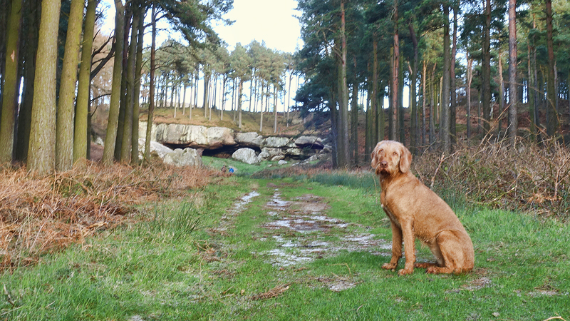 Woef vindt alles nog steeds leuk en rent soms voor me uit, zoekt takjes en stokken en rommelt wat tussen de bladeren.