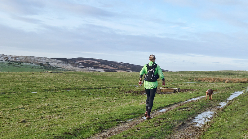 Ik heb vandaag iets nieuws aan mijn voeten. Ik draag mijn nieuwe (gewonnen) OS1st calf sleeves (die heerlijk lijken te zitten overigens) en over mijn broek de Sealskinz kousen van S. Hij draagt ze op de fiets en ik ben benieuwd of het iets is voor het lopen. Ik vind natte voeten totaal geen probleem, maar ik vraag me af of dit iets zou zijn voor een meerdaagse waar je wat minder makkelijk sokken kunt drogen. Het begin gaat eigenlijk heel goed. De modder is natuurlijk nat en normaal voel je dan al het water en het zand door de sokken heen geperst worden en heb je eigenlijk meteen al natte voeten. Nu voel je wel dat het water de schoenen binnenkomt, maar blijven de voeten zelf droog. Ik ben dus aan het begin heel enthousiast.