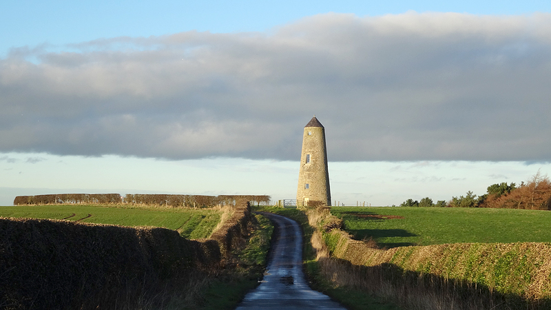 Ik loop naar High Newton en ga weer via de zendmast bij Low Newton terug naar Beadnell. Er is eigenlijk geen kip onderweg, ik kom alleen een man tegen met een lelijk doend hondje aan de riem. Eng beest.