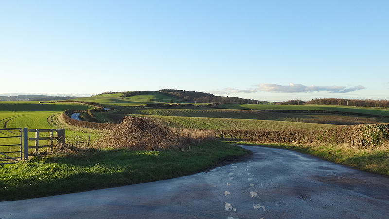 We lopen nu in de richting van een farm die daar in de rimboe ligt. Vanaf daar kan ik over de verharde weg terug of via de St Cuthberts way. Ik besluit de weg te nemen zodat ik een volgende keer de bovenkant kan lopen, dus heen via de St Cuthberts way en terug via de weg. Ik kan dan eventueel naar de watervallen en/of Yeavering Bell. Ik weet immers nu aan welke kant ik die rotberg weer af moet lopen!