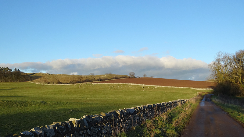 Vandaag is het stralend weer. Ik ga dus zeker op pad maar waarheen? Het waait ook niet erg dus de drone oplaten is ook een goed idee misschien. Ik twijfel enorm maar aangezien ik daar niet zo ver mee kom, besluit ik naar Wooler te gaan voor een run en eventueel de drone bij Bamburgh op te laten. Zo gezegd zo gedaan maar als ik langs Bamburgh rijd, bedenk ik dat de zon nog niet goed staat en dat ik het beter aan het einde van de dag kan doen. Ik rij dus door en na 35 minuten ben ik in Wooler op mijn bekende plekje. Ik besluit de drone mee te nemen op de run om beelden te maken bij Broadstruther, het doel van mijn run.