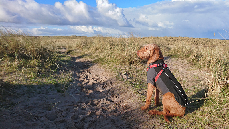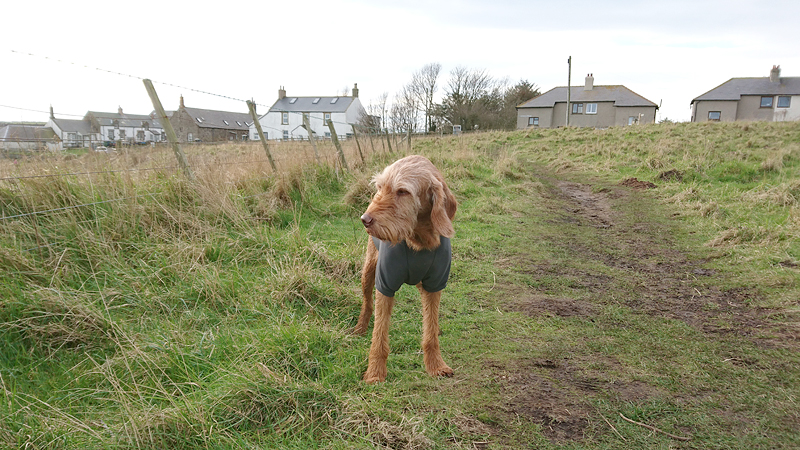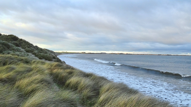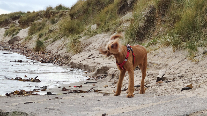 Vandaag is woef onrustig. Ze is natuurlijk ook loops en dat betekent dat ze veel plasjes wil doen en ook onrustig is. Het weer is goed en ik voel me goed, dus ik besluit tot een rondje in Beadnell. Omdat de storm weg is, kan ik nu wel weer bij de kust lopen en woef vindt die duinen nou eenmaal geweldig. Ik hoop alleen dat het rustig is qua hondjes. Als ik in Beadnell sta, merk ik dat ik mijn Garmin niet om heb. Lekker zo’n lege pols, voelt goed. Ik weet dat de route en de afstand toch wordt opgeslagen in mijn telefoon dus het maakt me niet uit.