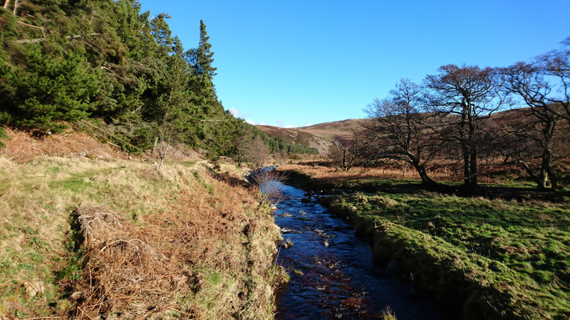Na het watertje weer even omhoog. Het loopt allemaal niet echt makkelijk moet ik zeggen maar ik doe mijn best. Ik ben wel veel tijd kwijt geraakt met die drone en met foto’s maken. Af en toe moet ik ook even op de kaart kijken en ik loop zelfs ergens bijna verkeerd. Raar is dat toch. Maar ik ben bijna bij Broadstruther en ik moet nu aleen nog even klimmen maar over een normaal gravelpad.