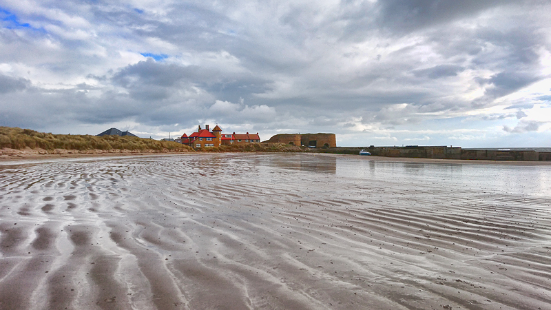 Omdat ik nog een beetje met woefje zit, ga ik maar voor een kort rondje naar Beadnell. Het is dichtbij en het loopt vrij aardig zo als offroad stukje en meestal zijn er weinig honden. Voor nu dus even ideaal eigenlijk. Het is vreemd weer, het is koud en ik weet niet zeker of het droog blijft want vanmorgen regende het hard Ik vertrek deze keer dus maar met mijn Nike jackje en woef heeft haar cloudchasertje aan. Maar als we op het strand een kijkje nemen, is het winderig maar eigenlijk wel mooi.