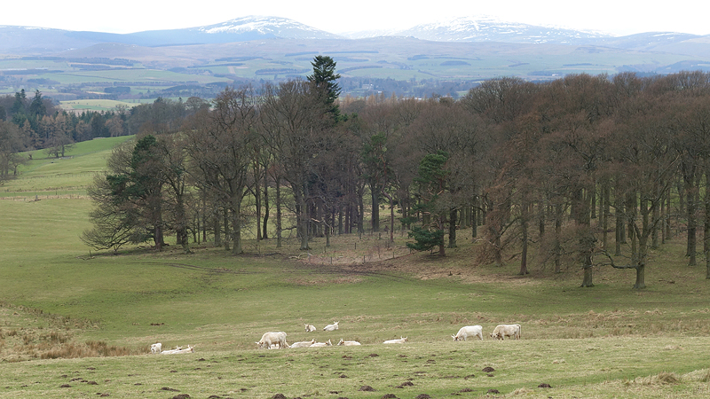 Hoewel het allemaal niet meevalt, is het uitzicht – ondanks het weer – wel erg mooi hoewel dat totaal niet overkomt op de foto’s. De heuvels rondom, de fraaie witte koeien (een bijzonder soort weet ik nu) en de met sneeuw bedekte toppen zijn allemaal prachtig. Het enige nadeel is eigenlijk dat de vergezichten steeds ‘achter’ me liggen. Ik moet dus stoppen en me omdraaien om even te genieten van het uitzicht.