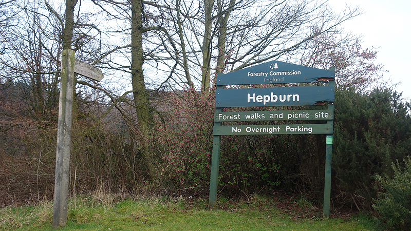 Het is me wel bevallen die nieuwe avonturen dus vandaag ga ik weer naar een onbekend stukje. Gisteren was ik bij verrast met het forest rond Chillingham en op de terugweg liep ik langs Hepburn waar je kon parkeren en waar je ook een stukje door een bos zou kunnen. Bovendien had ik gezien dat er in het bos een oud fort te zien zou zijn (nou ja, rotsblokken dan) en even verderop nabij Lilburn nog een standing stone met een folly tower. Genoeg te zien en te beleven dus en in de ochtend tuur ik op de kaart en maak ik samen met S via de telefoon een aardige route van 13 km Eerst via het bos, daarna onderlangs over een rustige weg richting Lilburn, langs de toren en de standing stone en dan weer terug naar de parkeerplaats bij het bos. Eitje toch? De route staat al snel in mijn navigatie en niet veel later gaan waf en ik op pad. Het is geen heel helder weer, maar ik ben blij met de temperatuur. Er staat geen wind, het is droog en niet te warm voor woefje. De parkeerplaats is natuurlijk snel gevonden aangezien ik daar gisteren in mijn uppie langs rende op de terugweg naar de auto. Ik tuur even op het bord en maak ook een foto van het Bastle House aan de overkant van de weg. Ik ga straks wel verder kijken want ik kom er straks weer langs op de terugweg.