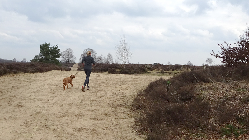 We vertrekken na de middag voor onze run en parkeren weer bij de camping aan de bosrand. Op zich best jammer dat we het niet gaan doen, maar we hebben al enorm veel dingen in de laatste week gepropt dus dat is al niet slecht. Woef heeft rustdagen gehad en is vrolijk en blij, dus nemen we de doggyride niet mee. Ik ga ervan uit dat ze fluitend dit rondje gaat meelopen en mocht dat niet het geval zijn, dan kunnen we altijd eerder terugkeren en de kar ophalen uit de auto. Maar ik kan alvast verklappen dat woefje werkelijk nergens problemen mee had, aan het einde nog leuk met een tak ging rennen en wij vermoeider leken dan zij. Geen enkel probleem dus. Zij was nog lang niet klaar aan het einde van de run. Overigens is dit een prachtige afleiding voor haar want ze is weer een beetje schijndrachtig compleet met uiertjes.
