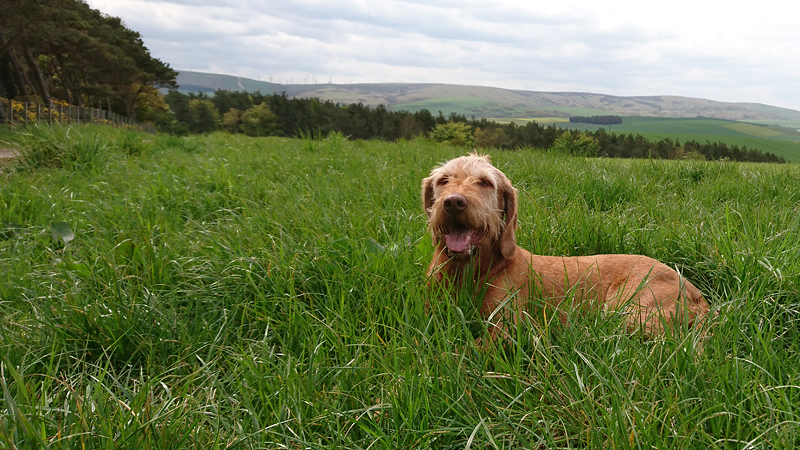 Vandaag is het weer mooi weer als ik wakker word, en ik twijfel dus enorm wat ik zal gaan doen. Het plan was natuurlijk om de Berwickshire Coastal route te lopen met woef. In plaats van de tent, had ik al een B&B gevonden waar woef ook welkom zou zijn. Dat scheelt sjouwen met de tent en slaapspullen en op 50 km is dat welkom. Maar de voorspellingen zijn slecht. Vanaf morgen regen. Nou hoor ik dat al steeds en tot nu toe is het nog steeds goed maar ik zal de kat niet op het spek binden. Zal ik dan de tweede etappe alleen doen? Met de bus naar St Abbs en dan terug naar de auto? Dat is ongeveer 28 km. Kan ik dat wel op dit moment en – belangrijker – kan woef dat? Ik twijfel. Het waait ook nog en op die kliffen daar…..