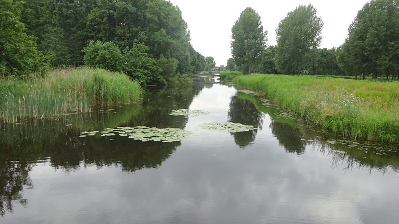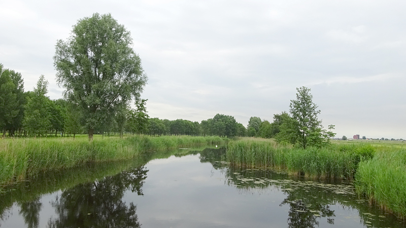 Eigenlijk willen we even vanaf de waterkant kijken en we zoeken naar een manier om bij het water te komen. Dat blijkt wel degelijk te kunnen en we dalen af over het gras naar de rivier. Later zien we dat we ook via de ‘keuken’ hadden kunnen lopen.