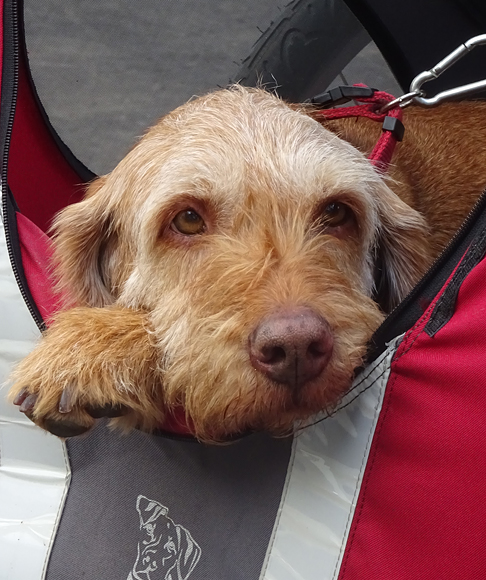 Ik loop nog even verder, en na ruim 20 km sta ik weer bij de auto waar waf lekker opgedroogd zit te wachten in de achterbak en S. de fiets op het dak heeft gezet. Ik ga me even snel omkleden bij het douchegebouw van de camping en daarna gaan we in het dorp wat drinken en een tosti eten. Daarna zien we wel wat we gaan doen met de geplande fietsroute.