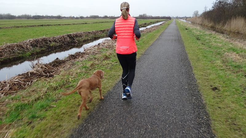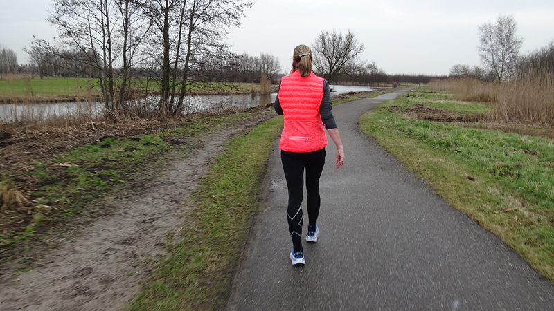 Ik ben best moe geworden van de beurs van gisteren maar ik heb ook zin in mijn loopje. We gaan dus maar eens zien waar het schip strandt. Het is mooi, rustig en prima qua temperatuur. l snel heb ik na de warming up mijn blauwe jackje uit. Dat wissel ik om voor mijn bodywarmer. Veel lekkerder en ook voldoende. Ik had vandaag zelfs beter mijn Aeroloftje aan kunnen trekken. Maar goed, dit is ook wel prettig.
