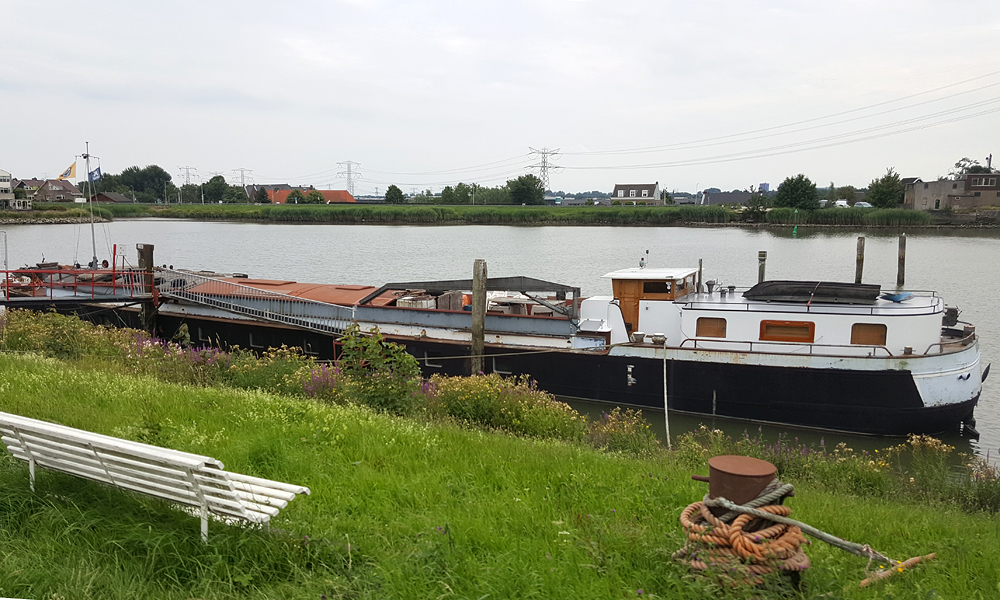 Het is de laatste dagen veel te druk met allerlei dingen. Dat is jammer want ik kom noch aan fietsen noch aan lopen toe. Maar vandaag gaan we dan toch even aan het einde van de middag op pad voor een rondje. S. fietst mee en neemt ook de doggyride mee voor de zekerheid. Het is een beetje vreemd weer en als het kan, dan gaat de kar gewoon mee. We kiezen voor een kort rondje en na de warming up lopen we even over het grindpad richting de dijk en gaan daar de dijk op. Ik loop daarbij ver vooruit op S. die eerst moet wachten op woef en daarna woef in de kar moet doen en de kar de dijk op moet duwen. Ik loop rustig door en zie ergens in de verte achter me het oranje vlaggetje van de doggyride. Even later rijdt S. gezellig naast me.