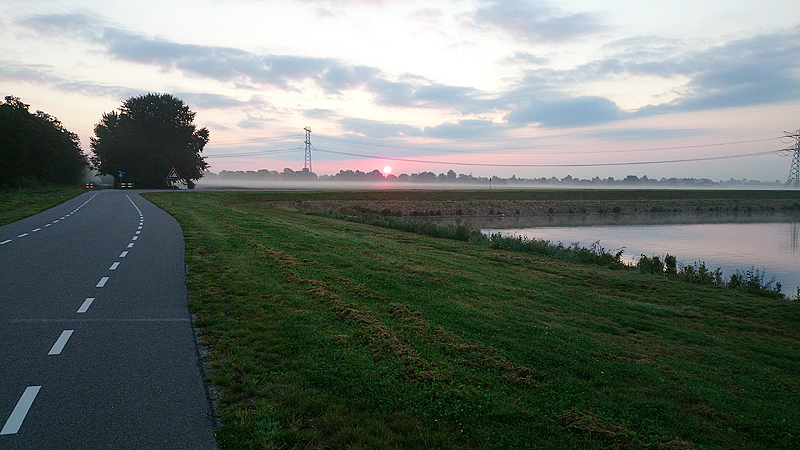 Weer een MAF rondje op het programma vandaag! Ik was benieuwd hoe het zou gaan na de 35 km van afgelopen zaterdag. Omdat het een vrij warme dag zou gaan worden, was ik al vroeg op pad met woeffie. Het was een prachtige ochtend waarbij de zon steeds een stukje hoger kwam en mooi oranje kleurde!