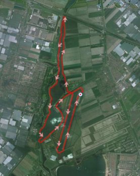 Als we bij het einde van de plas zijn, lopen we over de eerste baan voor de extra lap en terug over de tweede baan. Daar zien we een lepelaar overvliegen. Het kadootje van de dag! Met bijna 16 km op de klok komen we weer bij de auto uit. Op naar de derde ronde van de reeks!