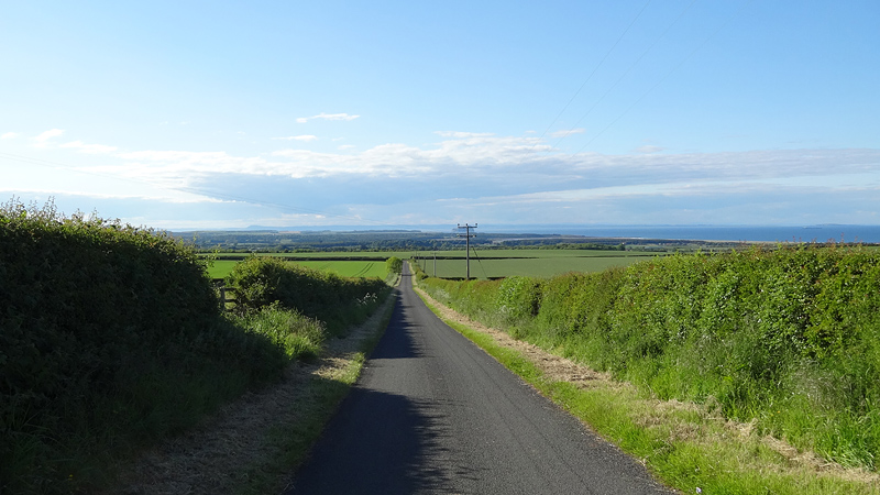 Daarna rechtsaf over de golvende weg en weer rechtsaf naar het stukje onverhard. Misschien was een rondje onverhard beter geweest voor nu maar ik ben er al bijna. Dit rondje is maar krap 7 km en daarmee dus 3 km korter dan de ronde buitenom. Via het onverharde stukje en het mooie paadje naar Cannongate komen we alweer bij het kerkje. Het rondje zit er alweer op.