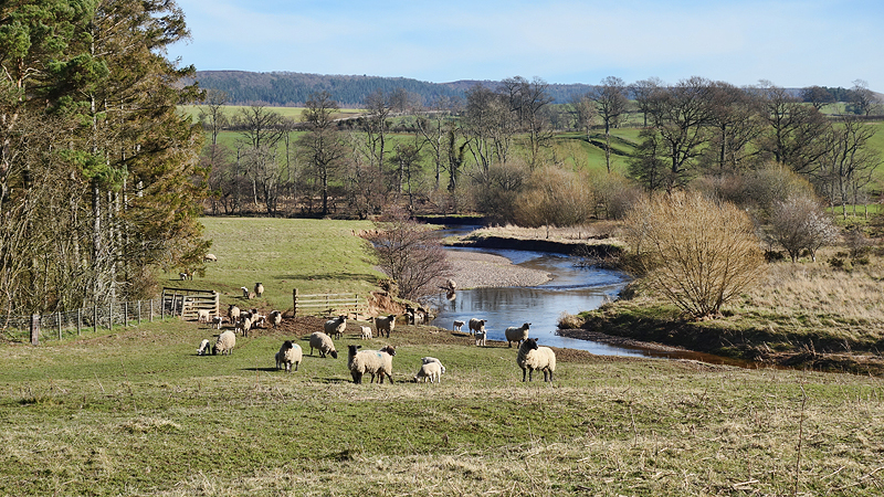 Het is echt prachtig en zo in het zonnetje is het net lente. Lammetjes, stromend water en vogels. Volop genieten dus. Aan het einde van de route stuit ik inderdaad op het hekwerk waar ik gisteren ook stond aan de andere kant. Toen had ik geen idee natuurlijk waar het pad zou moeten zijn, maar nu zie ik dat ik ook gewoon aan de andere kant erlangs kan blijven lopen en door de grote gate van de andere farm op de weg kan komen. Daar heb je geen flauw idee van vanaf de andere kant en je staat daar ook niet, want je staat veel verder naar links voor het prikkeldraad te turen. Maar nu loop ik gewoon rechtdoor, ga door het hek en kijk nog eens om. Prachtig!
