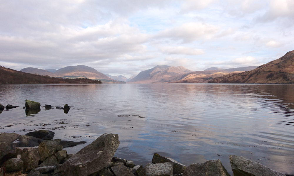 We gingen eigenlijk iets te laat op pad want het is toch een uurtje rijden vanaf hier en daardoor waren we na het mooie licht pas aan het einde van de run. Maar de rit naar de start was ook al leuk omdat we langs ‘ons huis’ reden en even konden kijken hoe alles eruit zag. De eigenaar van de kavel waar we een paar jaar geleden over onderhandelden heeft inmiddels zijn huis gebouwd aan het meer. De kavel is verkocht maar nog onbebouwd. Misschien wachten de nieuwe kopers totdat de eigenaar zijn eigen huis ernaast verkoopt, zodat ze een veel grotere kavel kunnen bebouwen. Dat zou een logische maar dure stap zijn. We zijn benieuwd wat er gaat gebeuren daar. Verder nog twee nieuwe woningen vlak bij elkaar aan de meer zijde. Dhuarts house nog steeds gezien als gemiste kans voor ons en verder weinig te zien. Een huis in Bonawe te koop waar we ook al eens naar keken. Maar het is en blijft (te) ver weg allemaal en onhandig om op die plaats te verhuren.