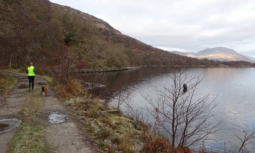 Het begin is vanaf de quarry eigenlijk weer erg mooi zo langs het meer. Mooie uitzichten en doorkijkjes en we genoten dus wel van de run. Geen enorme klimmetjes deze keer en dat zal de hele weg zo blijven ook. Beetje af en toe een steil klimmetje maar niks bijzonders en al helemaal niet zoals aan de andere kant. Opvallend dat het zo wisselt aan welke kant je loopt eigenlijk!
