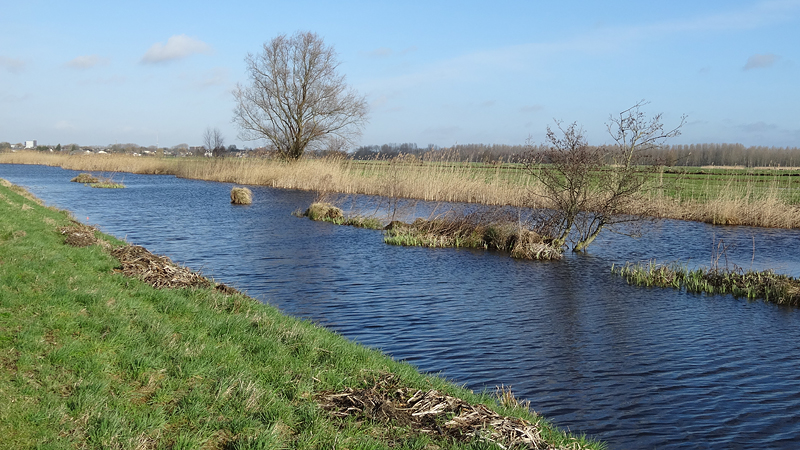 Na de rustpauze start ik weer voor de tweede 3.000 meter lap en die gaat goed. Ik heb dus geen idee wat mijn hartslag is tijdens deze run maar het voelt allemaal prima dus het zal wel goed zitten neem ik aan. Na de tweede rustpauze loop ik weer 3.000 meter continu en ook dat gaat goed ook al loop ik de helft van de run pal tegen de wind in. Ik ben op zich tevreden en woefje doet het ook prima. Aan het einde loop ik nog een extra 1000-tje richting het bruggetje en het grindpad en daarna beginnen we de cooldown. Wafje loopt inmiddels al een tijdje met een heleboel alg te zeulen en dat is een beetje vreemd gezicht.