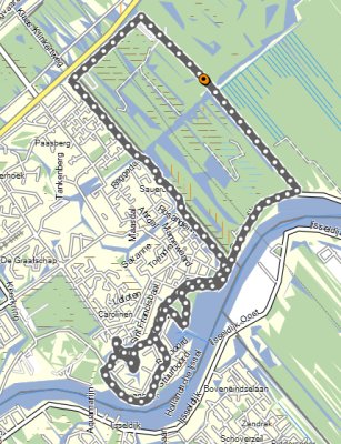Ik vertrek met woefje voor haar rondje en start weer vanaf huis. Het regent dus ik heb mijn petje op. Ik loop weer via de dijk naar Hitland en maak doe het vierkantje dat ik gisteren ook liep. Daarna ga ik bovenlangs terug en laat woefje bij Zandrak nog even loslopen zodat ze kan plassen en kan ruiken. Daarna verder over de dijk en via het parkje hier om de hoek weer terug zodat ze daar ook weer even lekker los kan lopen. Ik geloof dat ze het lopen aan de riem totaal niet vervelend vindt als het zo over een stukje weg is. Als ze daarna maar lekker even kan ruiken en kan plassen.