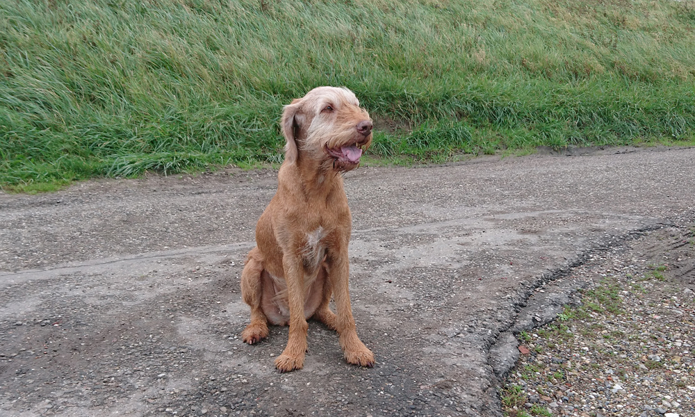 We wandelen daarna even een klein stukje samen op en daarna start ik mijn run weer. Ik word altijd blij als ik woef zo lief zie spelen met een puppy. Dat vindt ze meestal geweldig en aangezien die beestjes nog niet zo zwaar zijn, hoeft ze niet bang te zijn voor haar rug en gromt ze dus eigenlijk nooit. Ik loop naar de dijk en even wacht woefje af of ik misschien terug kom. Ik spreid mijn armen en roep in de wind. Ze hoort natuurlijk niks maar wie weet komt ze. En dat doet ze. Ze heeft blijkbaar even een gek halfuurtje want ze komt keihard aanrennen. Zo hard dat ze zichzelf bijna voorbij rent en als ze bij me is rent ze door en keert weer om en rent keihard weer terug en nog een keer weer richting de dijk. Ze moet er van hijgen als ze dan eindelijk rustig boven aan de dijk staat. Maf beest. Ze is echt zo fit en blij de laatste weken en daar word ik ook weer happy van natuurlijk.