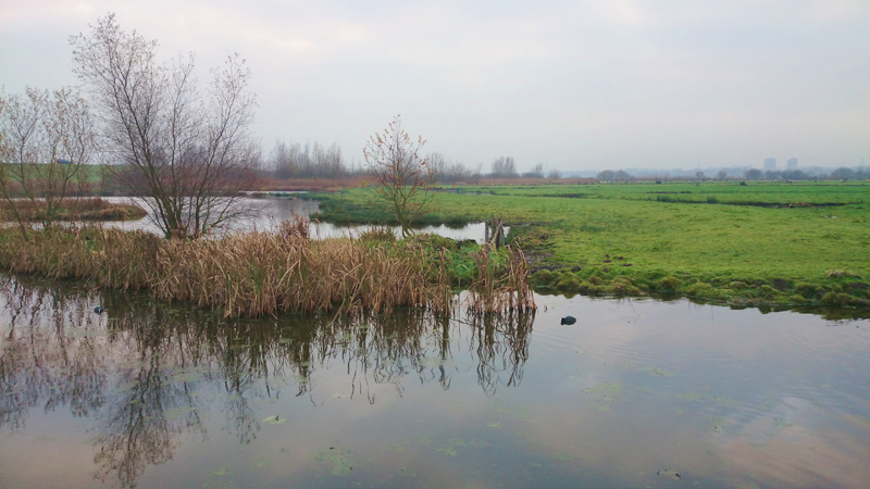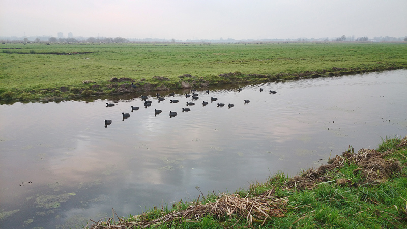 Op het laatste stukje zat weer een grote zilverreiger parmantig aan de waterkant maar helaas vloog de vogel net weg toen ik mijn telefoon wilde pakken. Niets aan te doen, dan maar een andere rare vogel gekiekt.